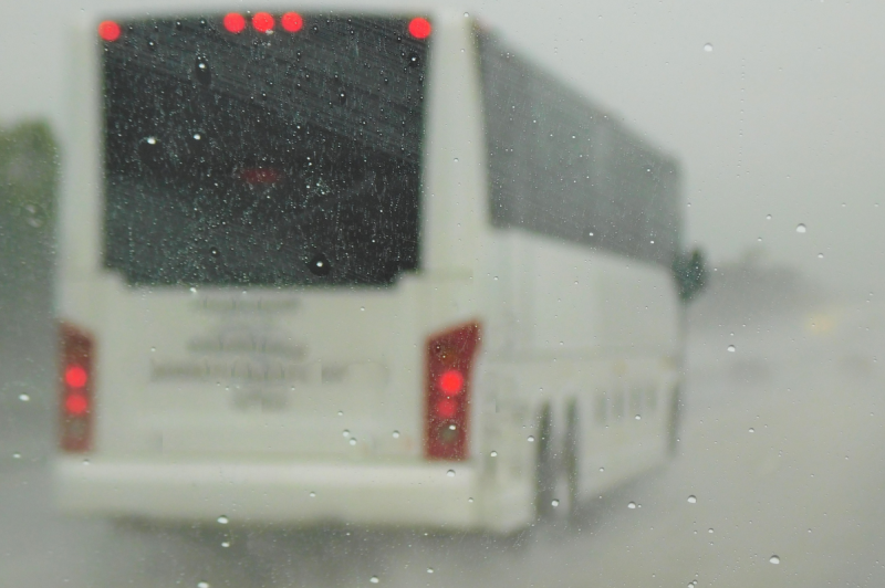 Īsi pēc plkst. 8 policija saņēma izsaukumu uz Ventspils šoseju, kur pasažieru autobuss bija nobraucis no ceļa braucamās daļas un apgāzies.